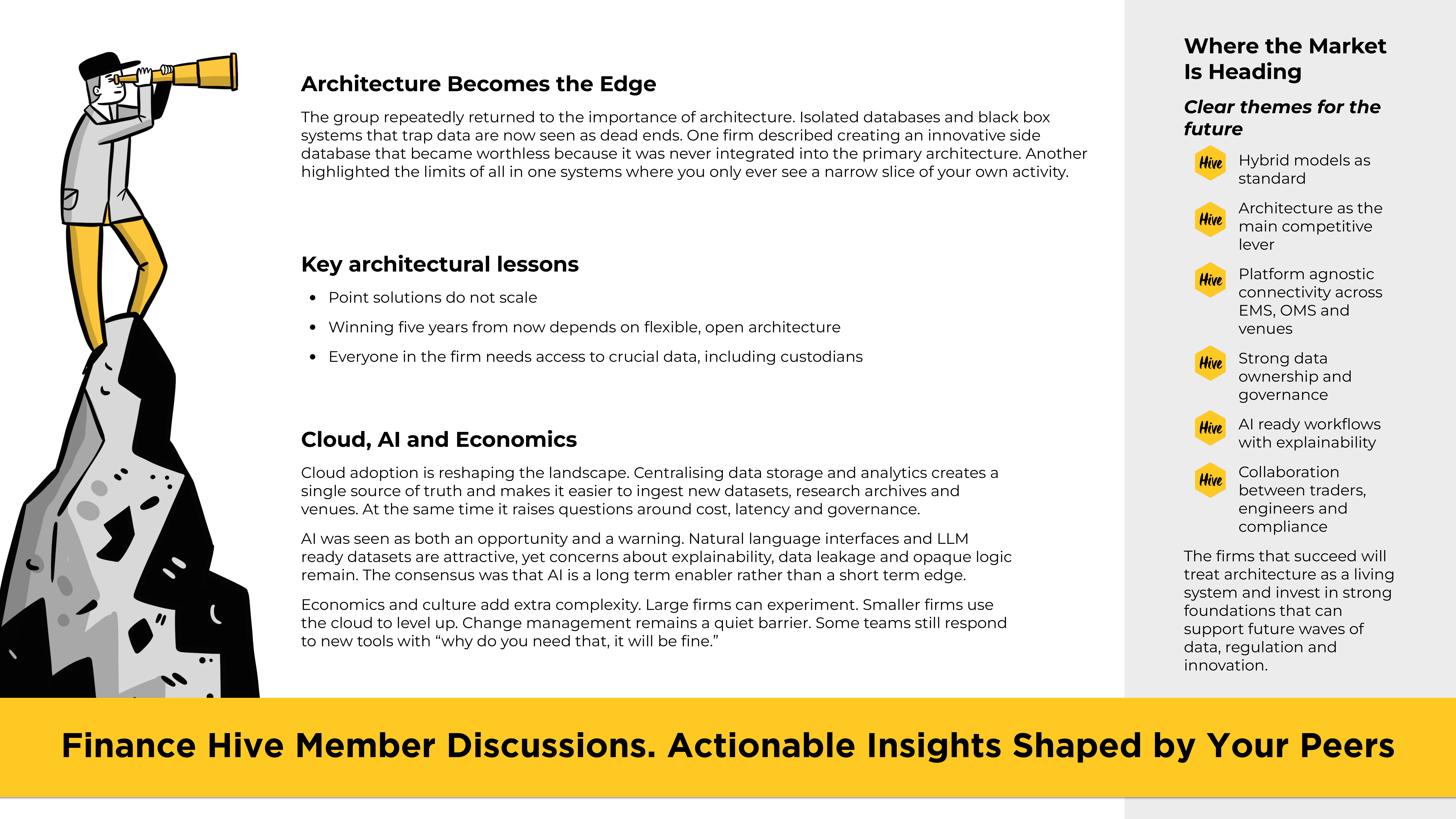 In this landscape, ‘build versus buy’ is no longer a choice to be made once. It is an ongoing discipline. The firms that succeed will treat architecture as a living system, investing in foundations that can support whatever the next wave of data, regulation, and innovation brings.